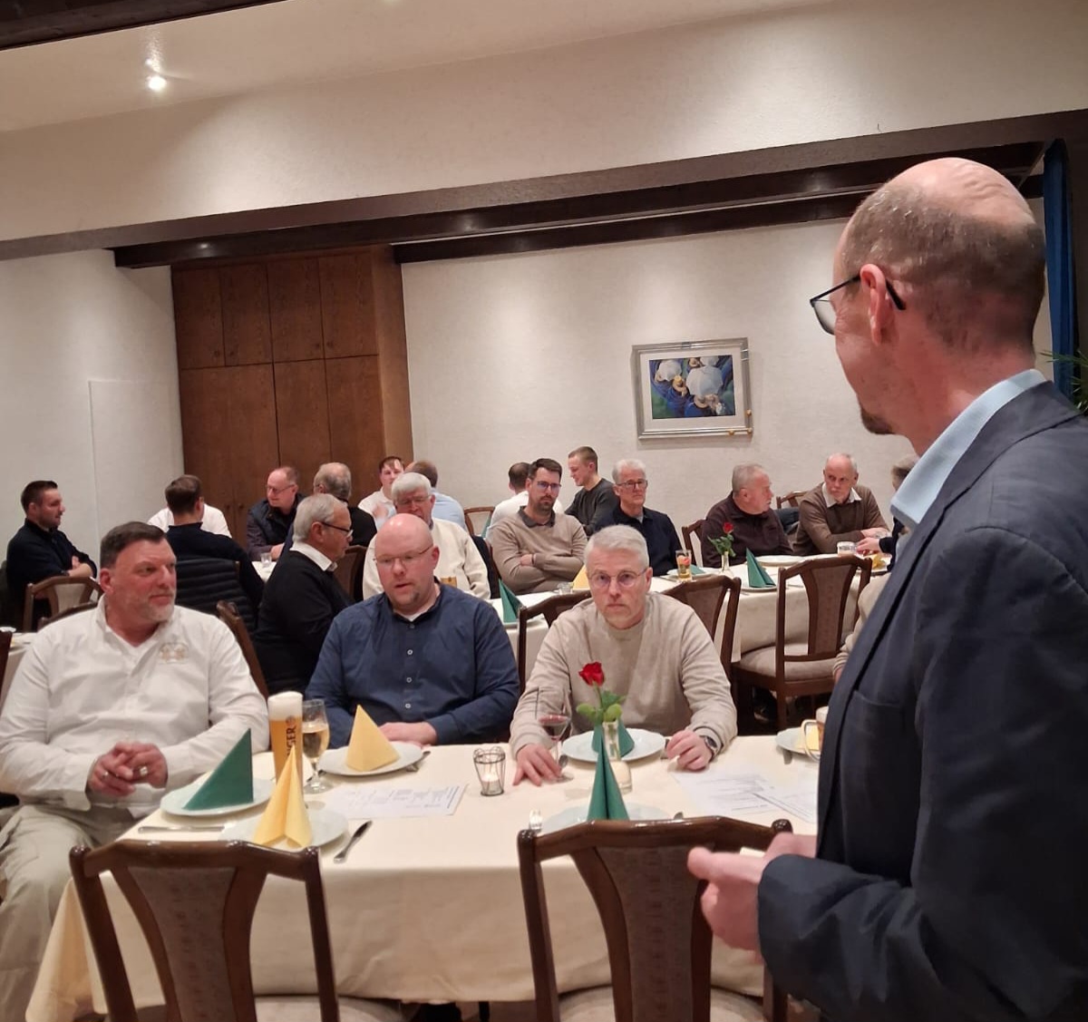 Im weiteren berichtete Oberleutnant Tiedemann über ein vergleichsweise ruhiges (Jaeger-) Schützenjahr 2025. Große Erleichterung und besondere Erwähnung fand in den Worten des Schießoffiziers Frank Schmidtke der Umstand, dass das Jaegercorps im Jahre 2025 wieder das Korpsvergleichsschießen beim 1. Exerzierabend gewonnen hatte, was von den anwesenden Mitgliedern wohlwollend zur Kenntnis genommen wurde.